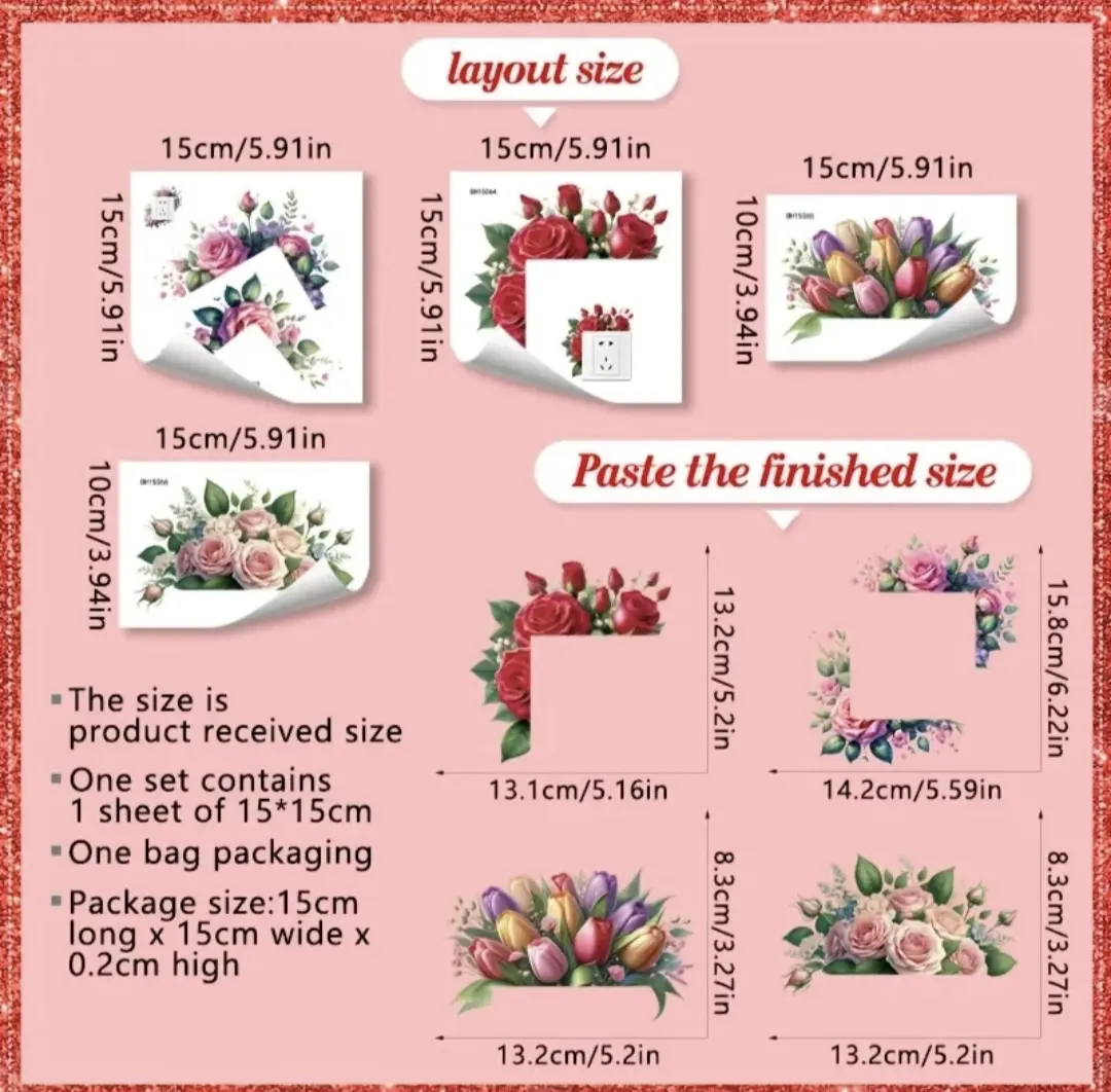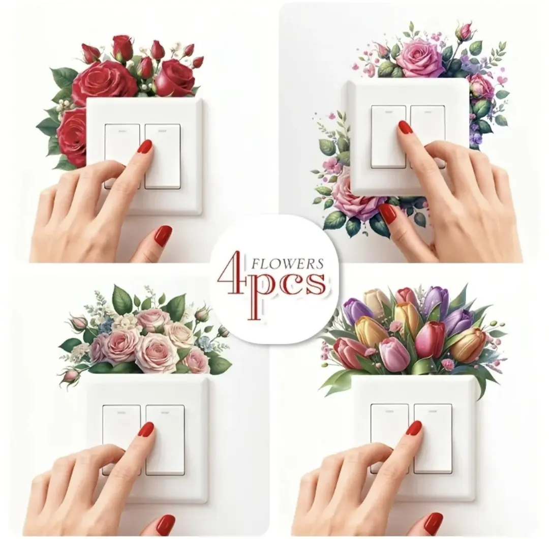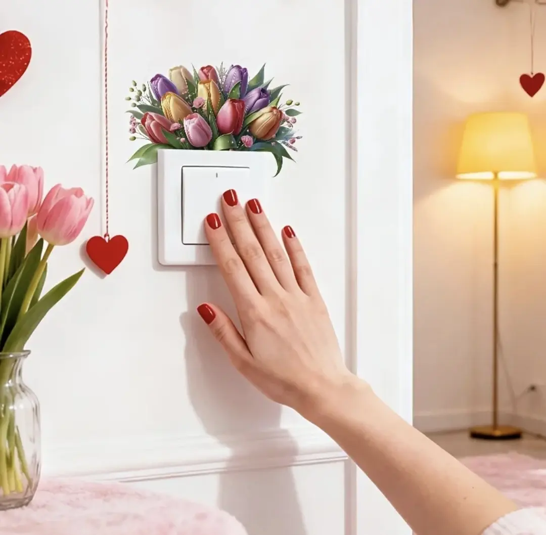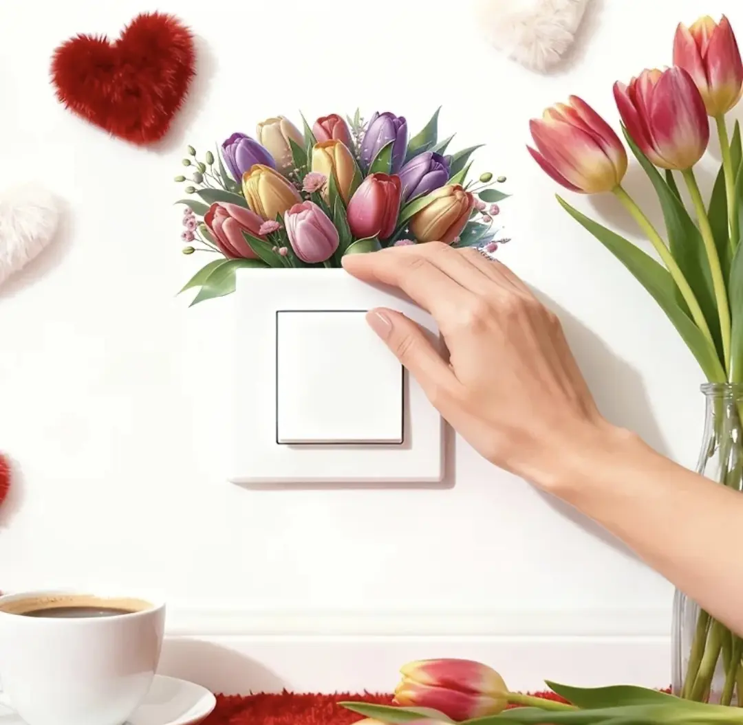 Dale un toque elegante y acogedor a tu hogar con este pack de 4 pegatinas decorativas florales para interruptores. Diseñadas con delicados motivos de rosas y tulipanes, estas pegatinas transforman interruptores simples en pequeños detalles decorativos que marcan la diferencia.