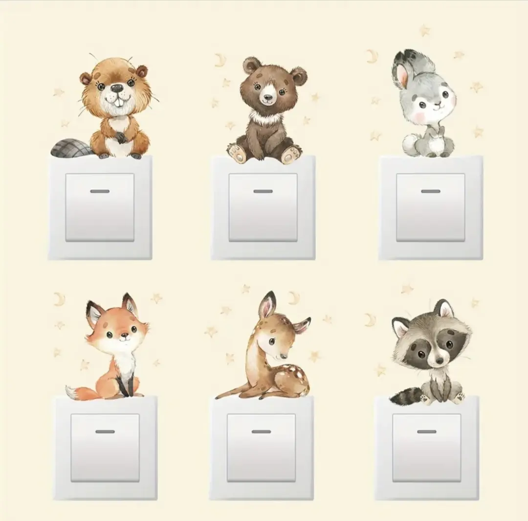 Dale un toque dulce y acogedor a cualquier espacio con este set de pegatinas decorativas infantiles de animales, ideal para habitaciones de bebé, dormitorios infantiles o zonas de juego. Sus diseños suaves y encantadores transforman interruptores y paredes en pequeños detalles que alegran el hogar al instante.